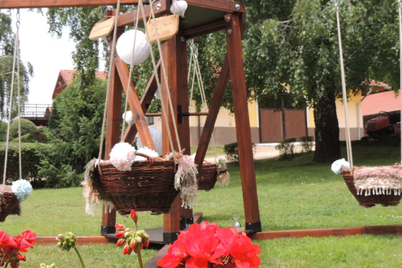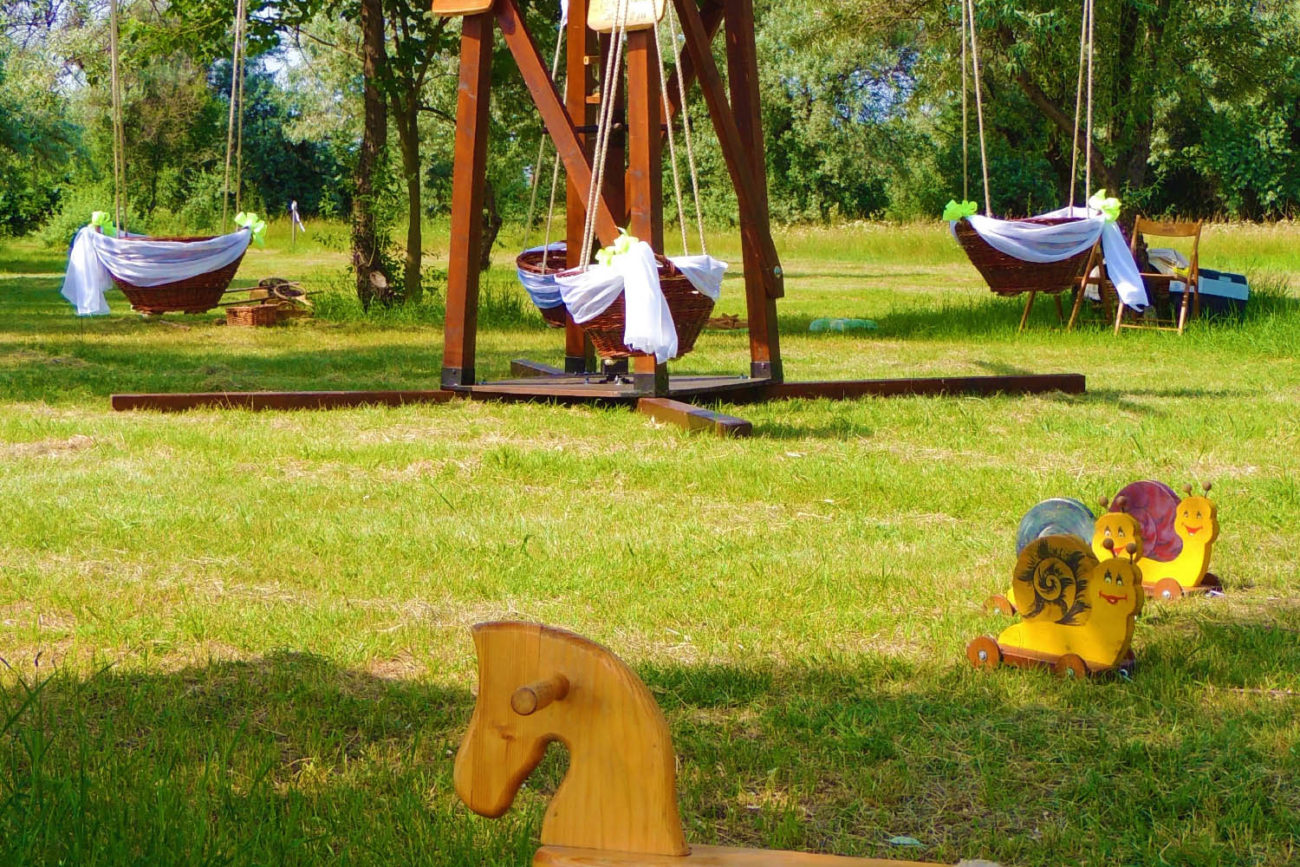 A nagy nap alkalmából körhintánkat „esküvői ruhába öltöztetjük”, ezzel még dekoratívabbá téve az esküvőt és helyszínét, népi játékainkat pedig „birtokba vehetik” a szülők és gyermekeik egyaránt.